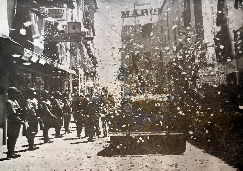 FOTO/LINHAS DE ELVAS 1963: “Foi neste ambiente de apoteose que A SEMPRE NOBRE E LEAL CIDADE DE ELVAS recebeu o Senhor Almirante Américo Tomaz. Milhares e milhares de papelinhos, vivas sucessivos e vibrantes, em homenagem sincera e calorosa ao venerado visitante
