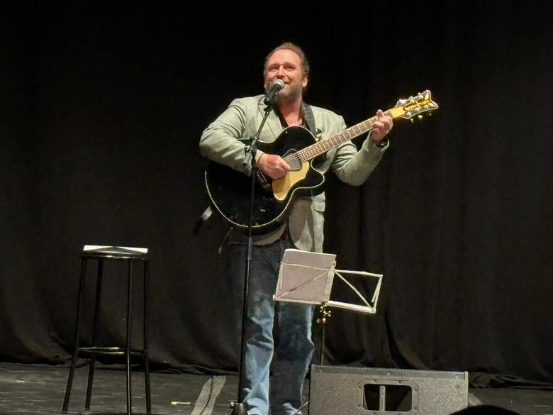 Durante sensivelmente uma hora e meia, e perante sala lotada, o popular ator e comediante levou o público à gargalhada com os seus apontamentos humorísticos, intercalados por temas musicais à guitarra.