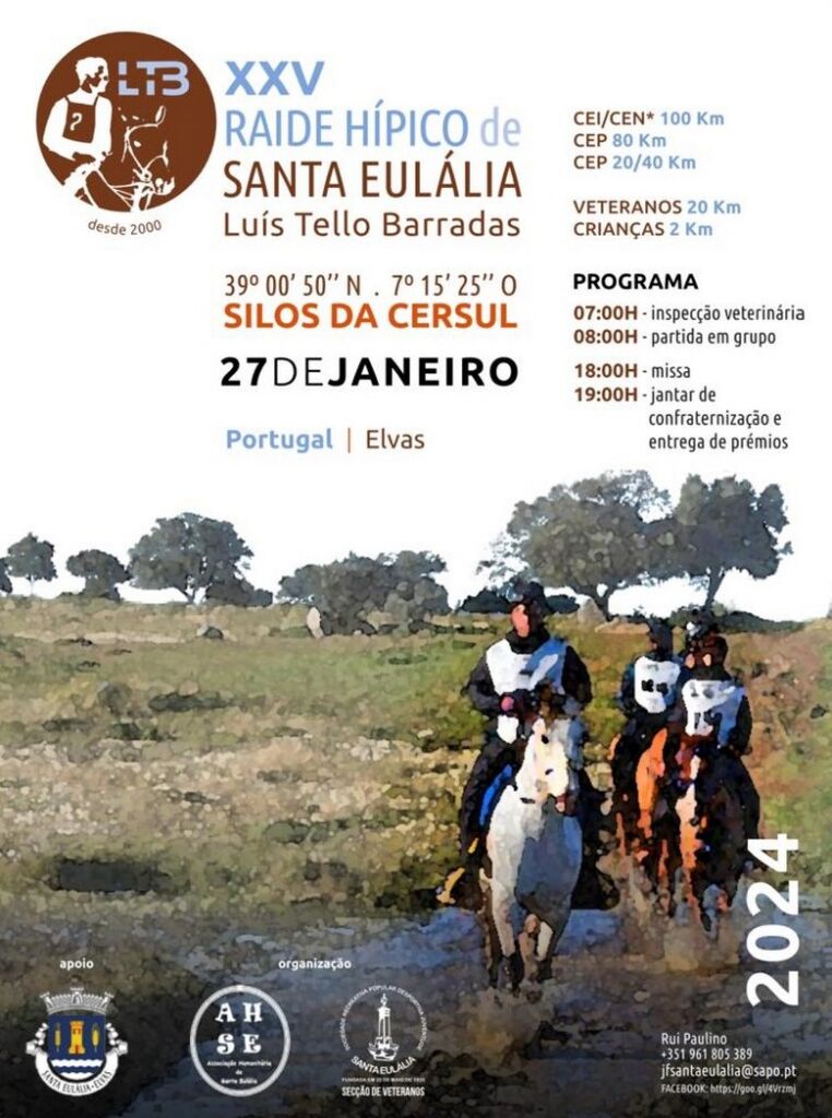 O Raide Hípico de Santa Eulália “Luís Tello Barradas”, prova organizada pela Associação Humanitária local e pela Secção de Veteranos da Sociedade Recreativa Popular e Desportiva, realiza-se no próximo dia 27 de Janeiro.
