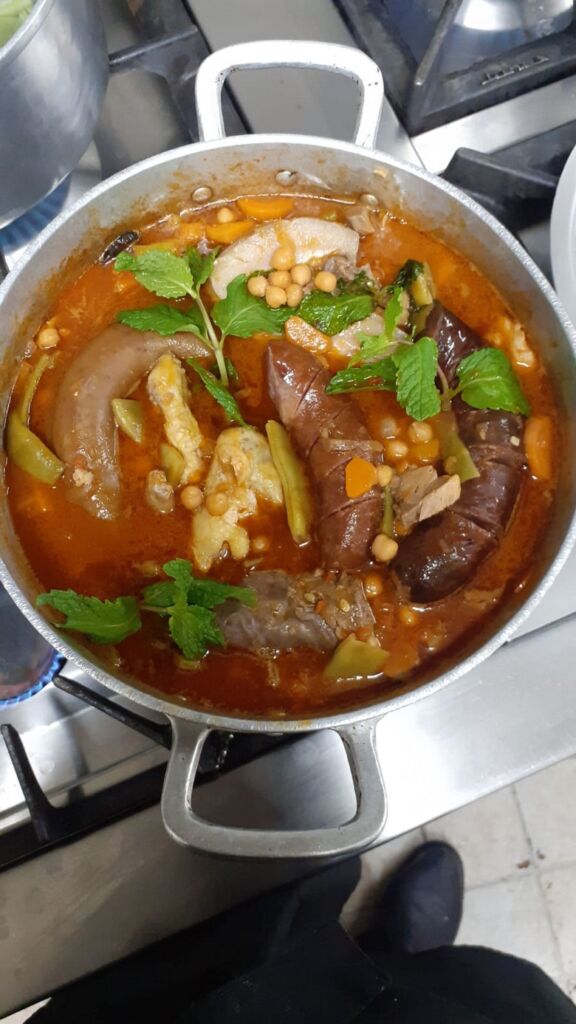 As comidas servidas no tacho abrangem a feijoada alentejana, o cozido de grão à casa, ensopado de borrego, feijoada de chocos com gambas, feijoada de lavagante com gambas, arroz de lavagante e grão guisado de bacalhau. Partindo para as especialidades de peixe, estas incluem o típico bacalhau dourado, bacalhau à Recanto, polvo à lagareiro, robalo escalado com molho verde e salmão à “belle meunier”. As carnes a saborear, incluem nacos de vitela com bacon, lombinho de porco com whisky, naco de lombinho com bacon, bife de frango à casa e frango frito à alentejana com migas de coentro, secretos de porco preto e três variedades de bife do lombo. No plano das sobremesas, os clientes podem degustar o sericá com ameixa de Elvas, pudim de ovos, mousse de chocolate, brigão, mousse de abóbora, quente e frio, salada de frutas e frutas variadas