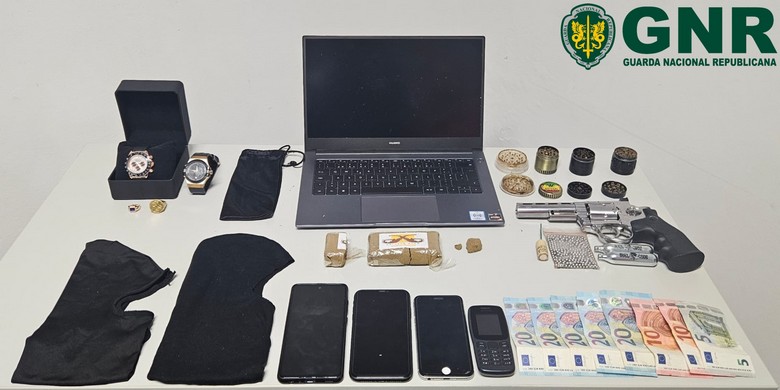 No decorrer das diligências, os militares apreenderam, além das 254 doses de droga e da arma de ar comprimido, duas botijas de CO2, 370 munições de chumbo, um petardo, 125 euros em numerário, um computador portátil, quatro telemóveis, dois relógios e dois anéis.