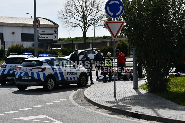 Segundo apurou o “Linhas de Elvas” no local, a vítima, uma senhora que seguia na moto, sofreu ferimentos ligeiros e foi transportada para o Hospital de Santa Luzia, em Elvas.