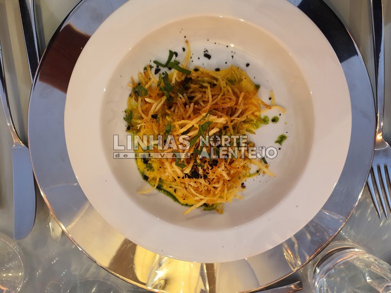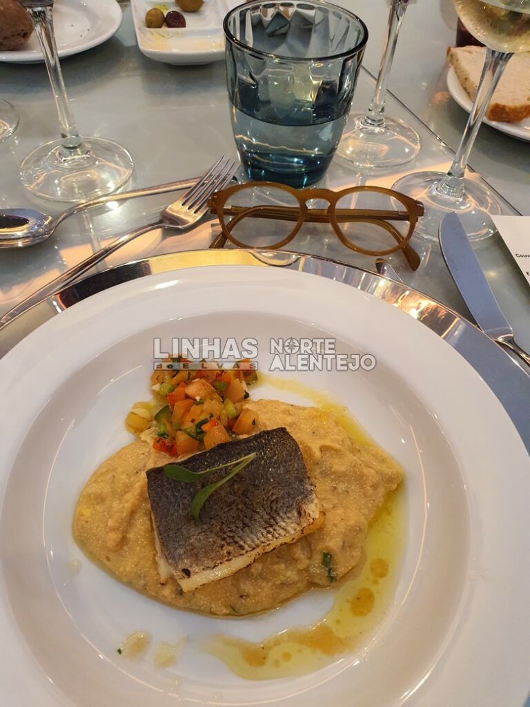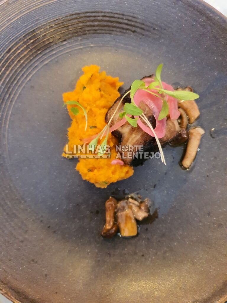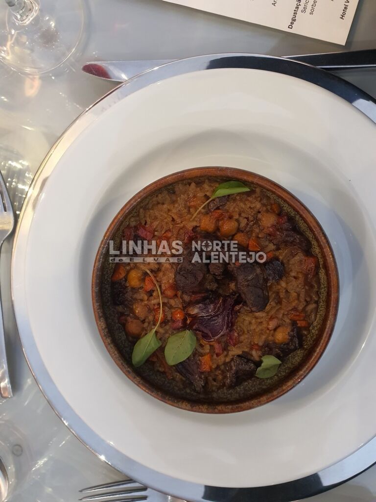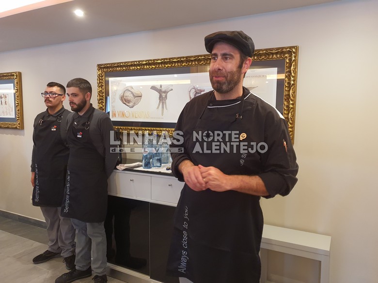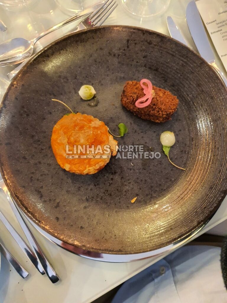 Na degustação aos convidados, onde participou o presidente da câmara municipal de Elvas, Rondão Almeida, foram dados a provar filetes de robalo com açorda de ovas de bacalhau e molho à espanhola e, como carne, a aposta variou entre o porco preto, através de um cachaço em baixa temperatura com esmagada de batata, e um arroz de forno de rabo de boi e grão.