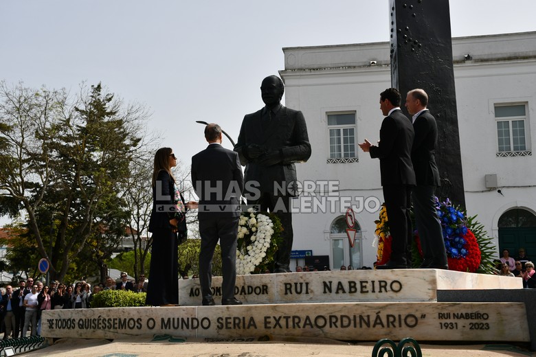As cerimónias de homenagem a Rui Nabeiro iniciaram-se pelas 10:30, junto à estátua do empresário no centro da vila, com o descerrar de uma frase evocativa do seu legado, a colocação de flores.