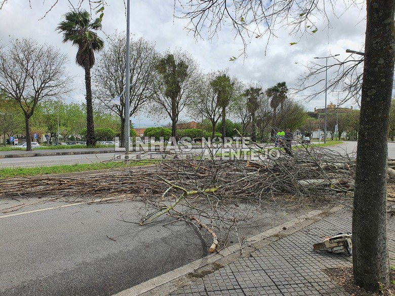 Uma equipa da Câmara Municipal de Elvas procede já à remoção dos troncos caídos na via.