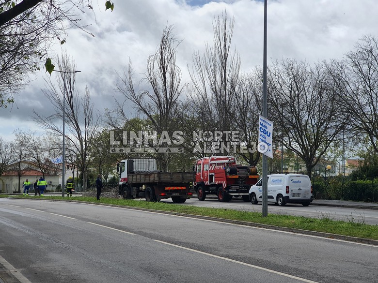 Os Bombeiros Voluntários de Elvas precedem já à sua remoção, sendo necessário o corte do tronco para facilitar a retirada.