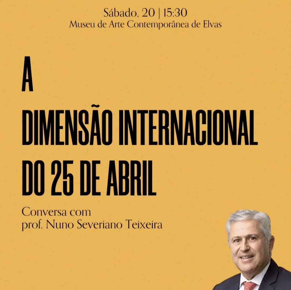 No âmbito da exposição “Sempre e Nunca Mais”, o professor Nuno Severiano Teixeira irá estar no Museu de Arte Contemporânea de Elvas para falar sobre “A Dimensão Internacional do 25 de Abril”.
