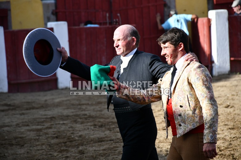 As pegas estiveram a cargo dos Forcados Académicos de Elvas, Coimbra e Amadores de Arronches, para um curro de seis touros da ganadaria Foro do Almeida.
