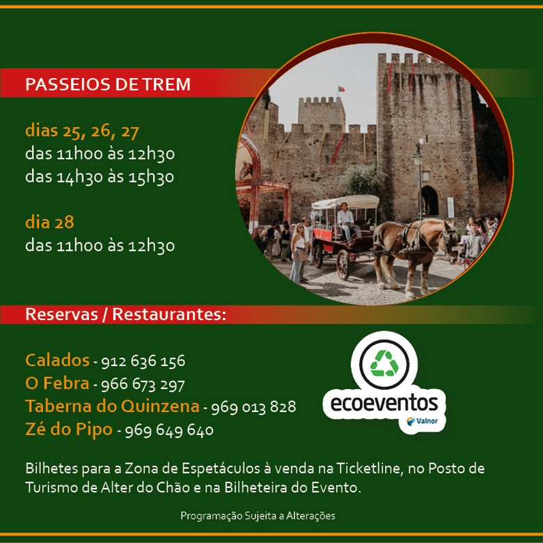 A “valorização dos costumes e tradições” também “está associada ao evento” e, “como forma de atrair outro tipo de público e mais gente a Alter do Chão, igualmente a cultura não poderá deixar de estar presente e ser valorizada”. “Daí a componente de espectáculos, em que apostamos em grupos que se evidenciam à época. O objectivo é, no fundo, dinamizar a economia local e que o evento seja atractivo a diferentes tipos de público”, acrescentou o autarca.