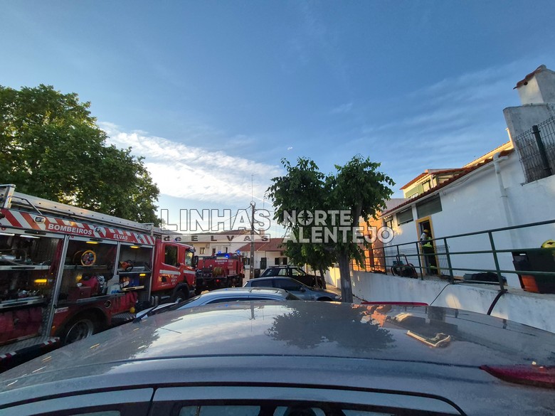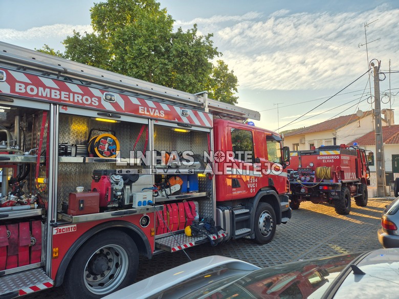 No local estiveram 9 elementos e 3 viaturas dos Bombeiros Voluntários de Elvas e da PSP.