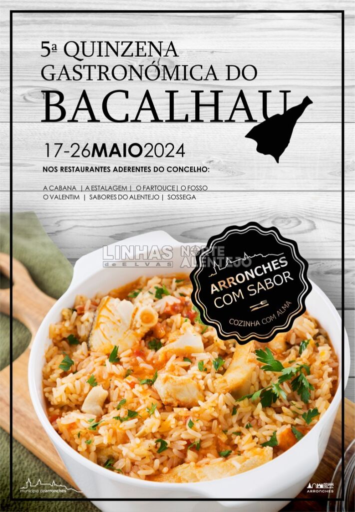 São sete os restaurantes aderentes à 5ª Quinzena Gastronómica do Bacalhau que vai decorrer em Arronches de 17 a 26 de Maio. A variedade de pratos a serem servidos é na ordem das dezenas.
