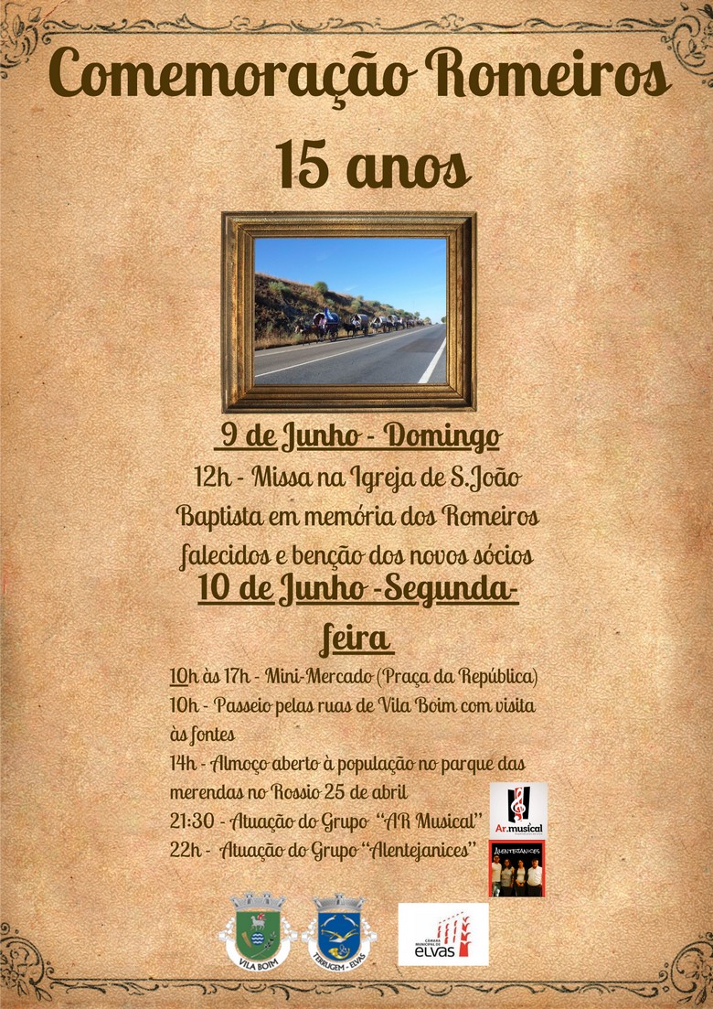 Os Romeiros de Vila Boim fazem 15 anos na próxima segunda-feira, dia 10 de Junho, e vão festejar ao longo de todo o dia.