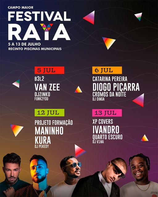 Os artistas Van Zee, Diogo Piçarra, Maninho, Kura e Ivandro são os cabeça de cartaz do Festival Raya, que vai decorrer em Campo Maior de 5 a 13 de Julho.