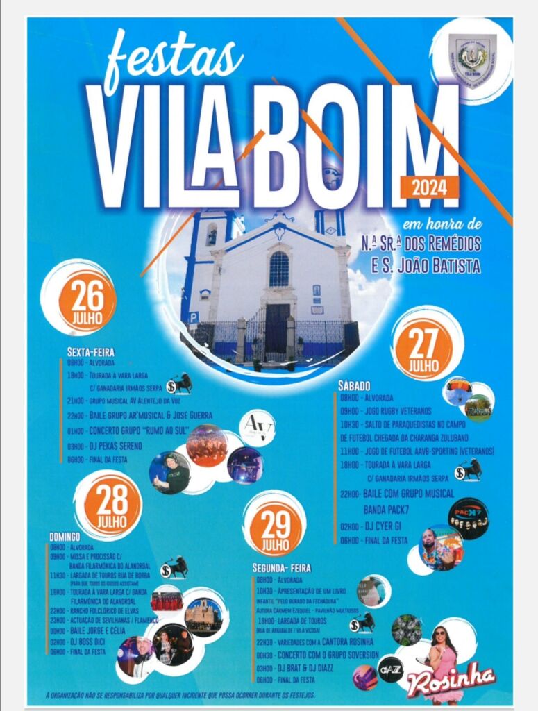Realizam-se de 26 a 29 de Julho as Festas de Vila Boim, em honra a Nossa Senhora dos Remédios e São João Batista.