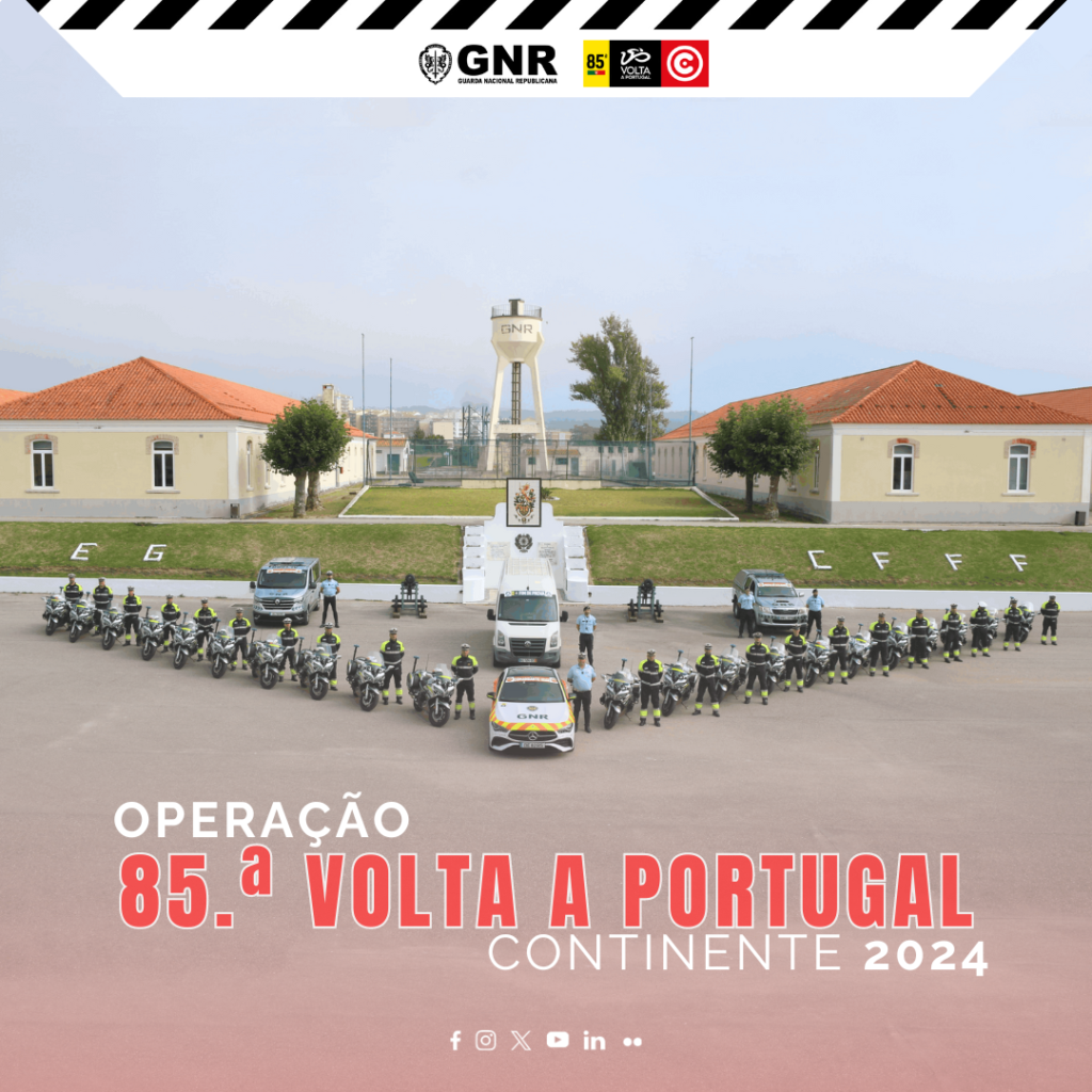 A Guarda Nacional Republicana tem em curso uma operação de policiamento da 85.ª Volta a Portugal Continente”, entre 24 de Julho e 4 de Agosto, nos distritos de Aveiro, Braga, Bragança, Castelo Branco, Coimbra, Guarda, Lisboa, Leiria, Portalegre, Porto, Santarém, Viana do Castelo, Vila Real e Viseu, a fim de garantir as condições de segurança dos ciclistas, do público em geral e proporcionar fluidez do tráfego durante a passagem da prova.