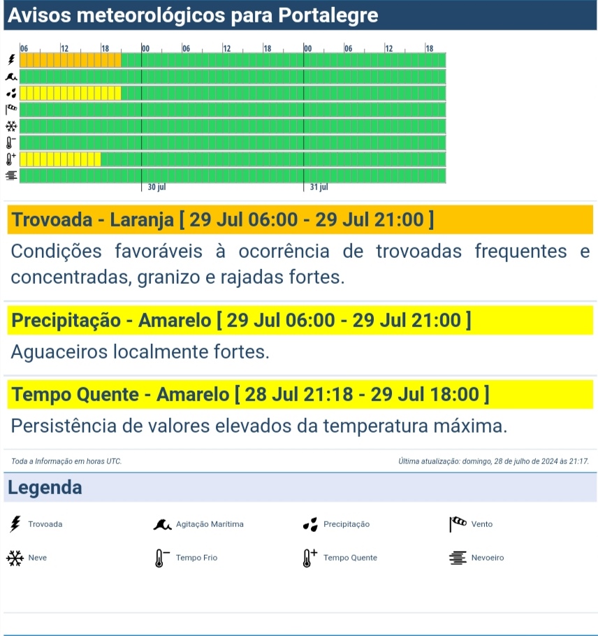 O distrito de Portalegre volta a estar em destaque nas recomendações do Instituto Português do Mar e da Atmosfera.