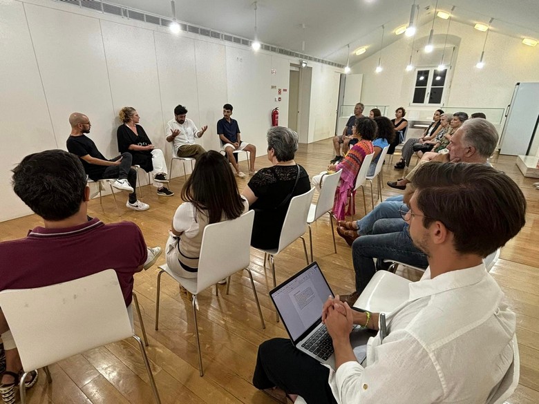 Na conversa intervieram o designer de moda Jorge Moita, a artista plástica Suzana Alves da Silva e o estudante de cinema Luís Eduardo Graça, todos eles naturais de Elvas.