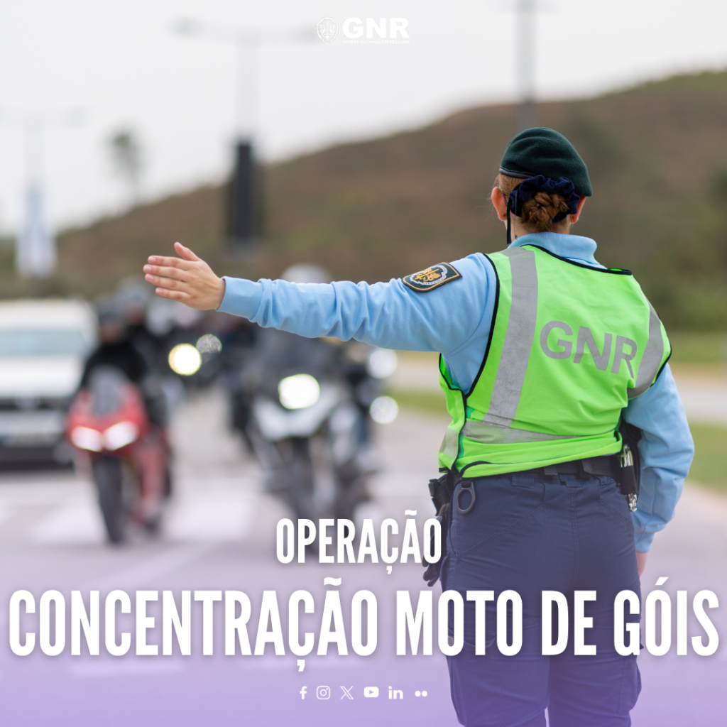 Começa hoje a Operação “Concentração Moto de Góis”. Trata-se de uma ação de patrulhamento e fiscalização rodoviária, desenvolvida pela Guarda Nacional Republicana entre os dias 14 e 18 de agosto, no âmbito da 31.ª Concentração Internacional de Motos de Góis.