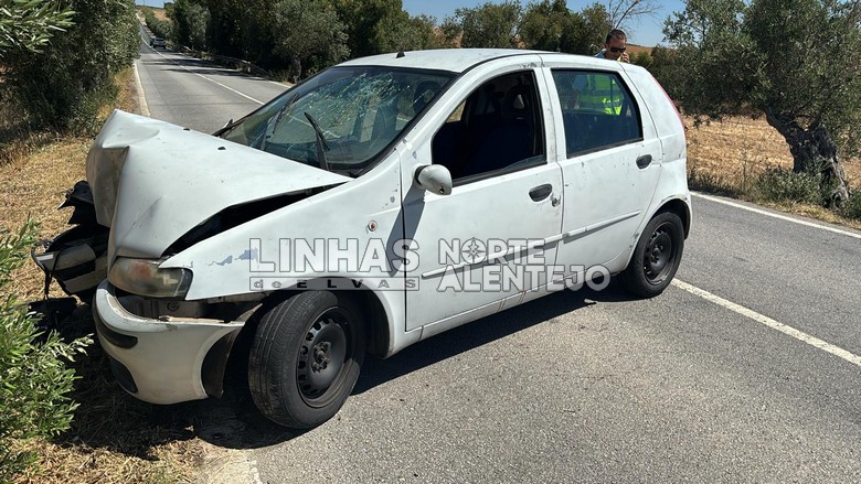 Um veículo ligeiro despistou-se na Estrada Nacional 373, à saída de Elvas, um pouco antes do meio dia.