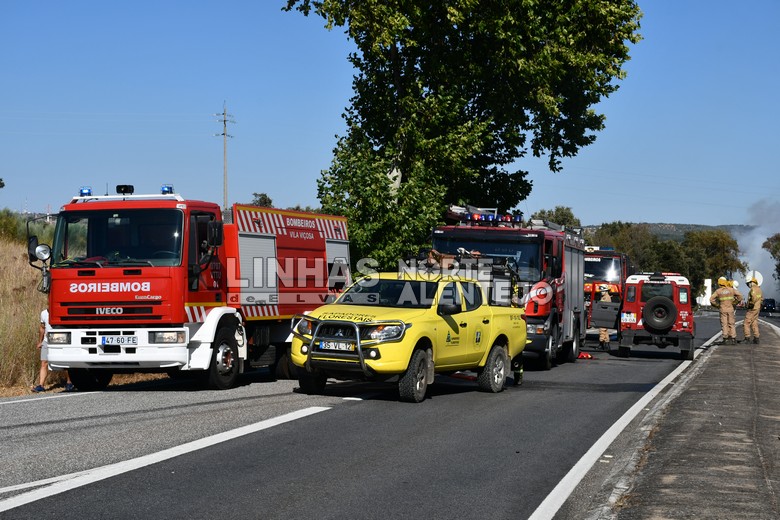 O incêndio que deflagrou numa viatura de transporte de mercadorias e alastrou a uma área de pasto e mato na tarde de segunda-feira, dia 19 de Agosto, entre Terrugem e Vila Boim, no concelho de Elvas, foi dado como dominado às 18,12h.