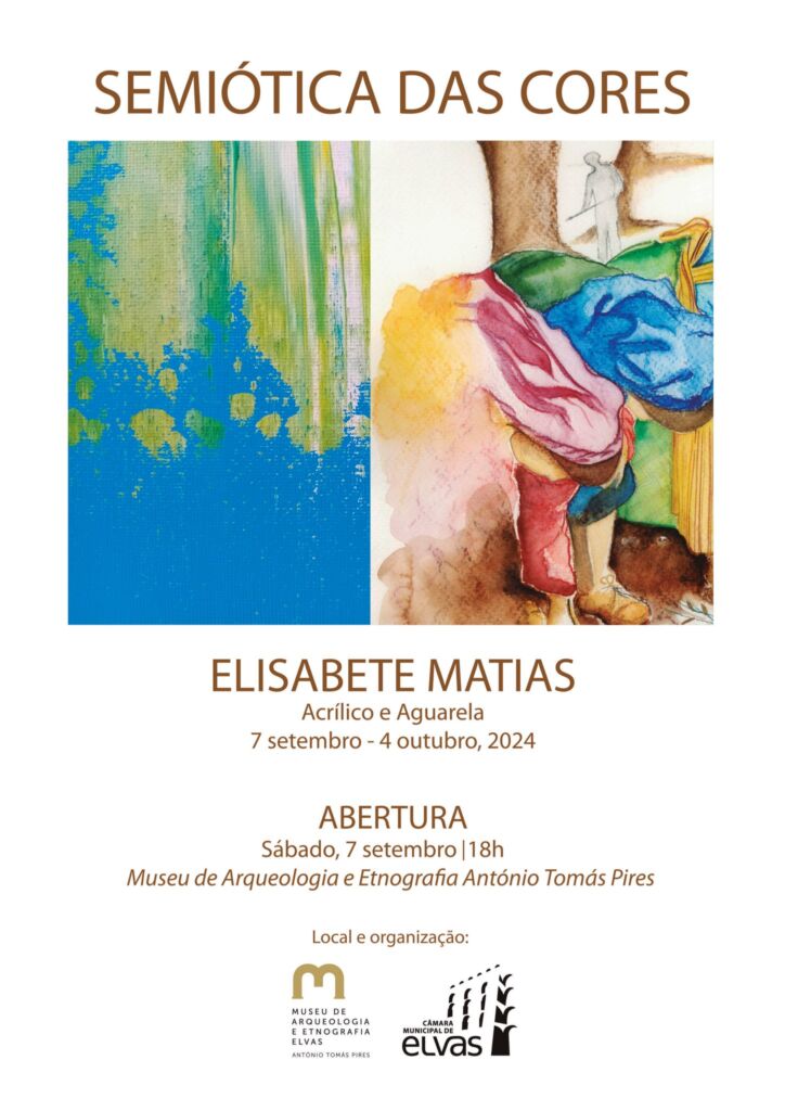 “Semiótica das Cores” é o nome que Elisabete Matias deu à exposição de pintura que vai estar patente no Museu de Arqueologia e Etnografia de Elvas de 7 de Setembro a 4 de Outubro.