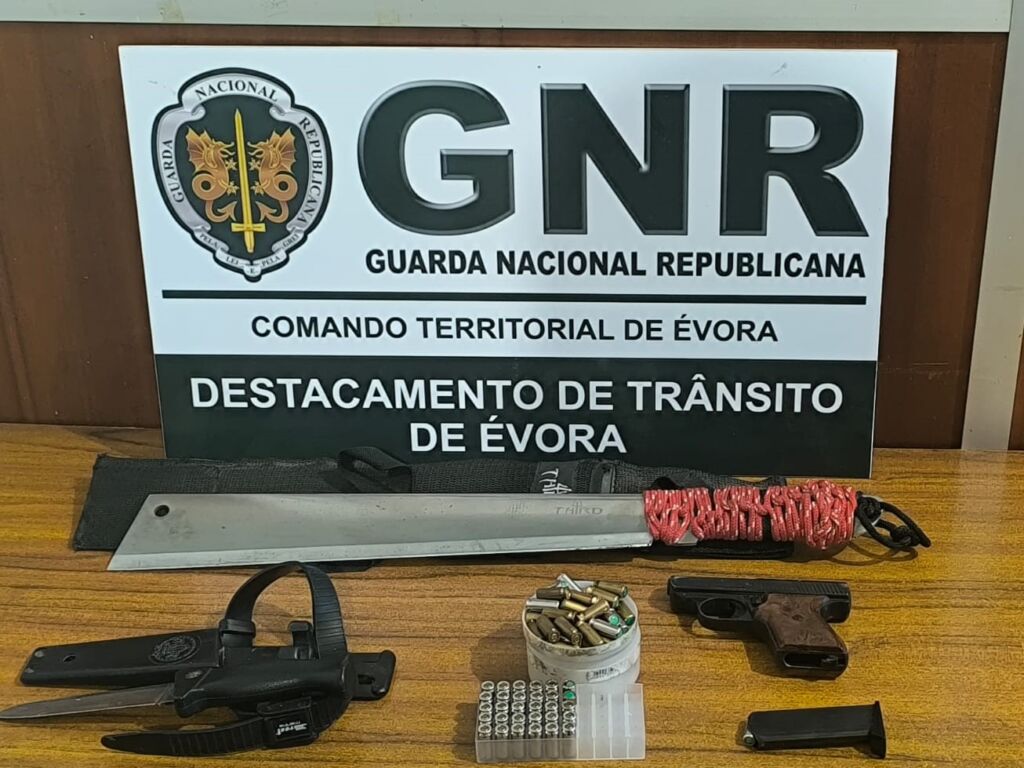 O veículo foi localizado perto da área de serviço de Estremoz, tendo os militares confirmado que o suspeito tinha na sua posse uma arma de fogo, diversas munições e várias armas brancas, factos que motivaram a detenção