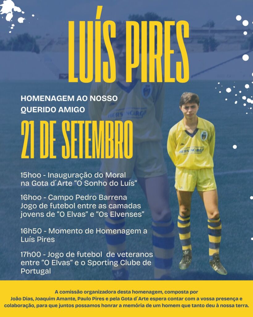 A Associação Sócio-Cultural de Elvas Gota d’Arte vai render homenagem a Luís Pires, antigo futebolista de “O Elvas” falecido em Janeiro, aos 52 anos.