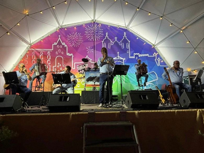 O grupo de música popular Xumbo Torto, de Vila Boim, preencheu a noite de sábado, dia 21 de Setembro, no Palco da Feira de São Mateus 2024.
