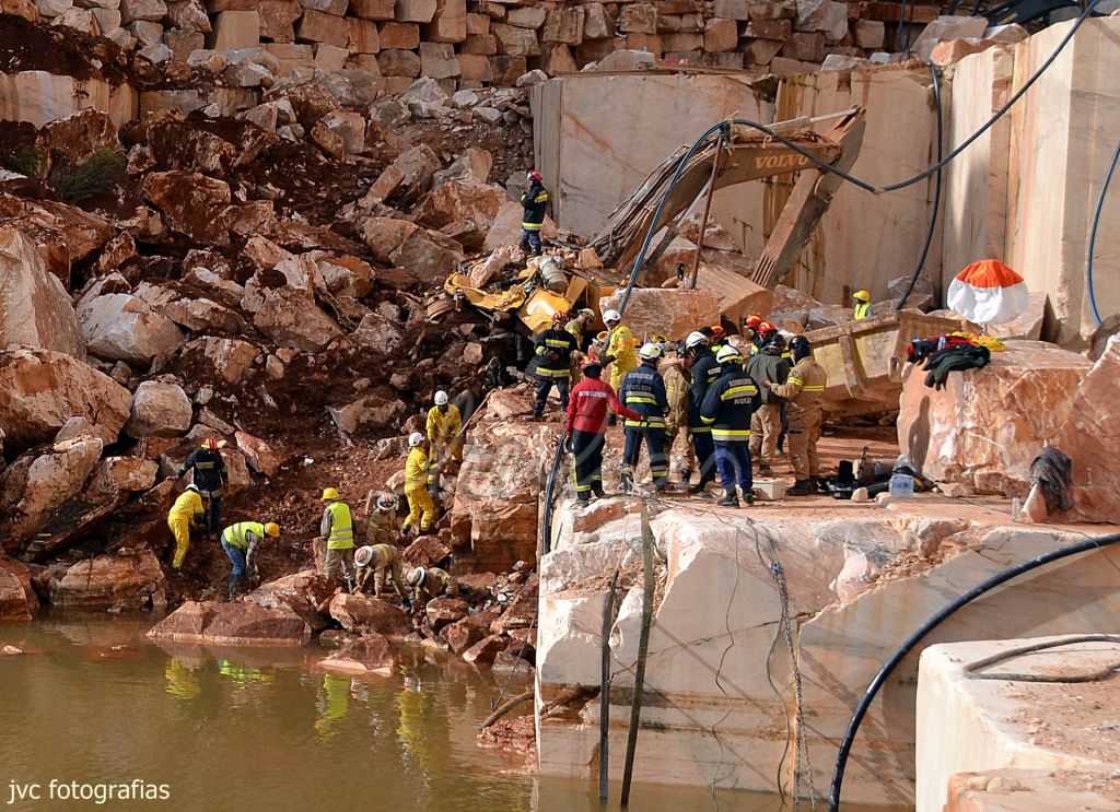 O acidente causou a morte de dois operários de uma empresa de extração de mármore na pedreira que estava ativa e de outros três homens, ocupantes de duas viaturas que seguiam no troço de estrada que colapsou e que caíram para o plano de água da pedreira sem atividade.