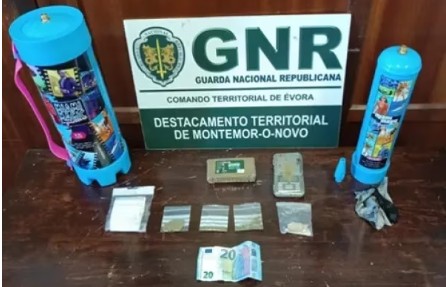 A GNR deteve um jovem, com 17 anos, por tráfico de droga, em Montemor-o-Novo, que tinha na sua posse haxixe, MDMA e óxido nitroso (a droga do riso).