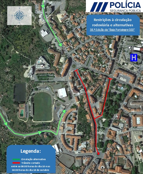 Como alternativa recomendamos que, durante o período atrás indicado, o acesso à cidade de Portalegre se faça pelas suas entradas norte e oeste, isto é, pela Rotunda do Areeiro/Avenida do Bonfim e pela EN 18/Avenida do Brasil, respetivamente (consultar anexo).
