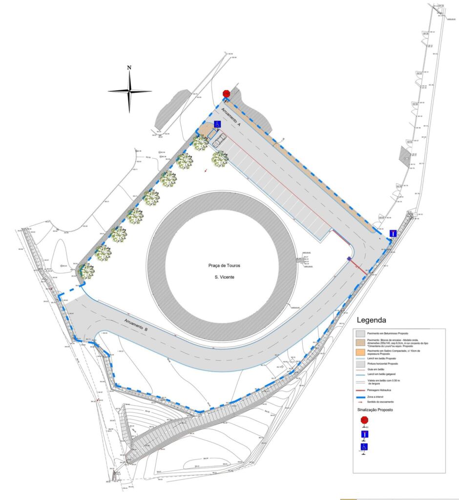 Este projeto tem como objetivo criar um arruamento com duas faixas em pavimento betuminoso, que irá contornar a Praça de Touros.