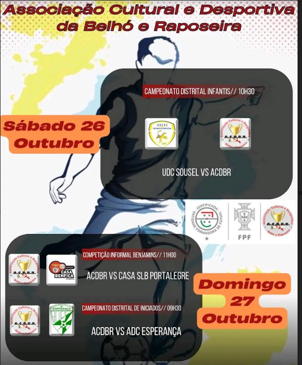 A Associação Cultural e Desportiva de Belhó e Raposeira irá realizar durante o fim-de-semana, dias 26 e 27 de Outubro, três encontros de futsal.