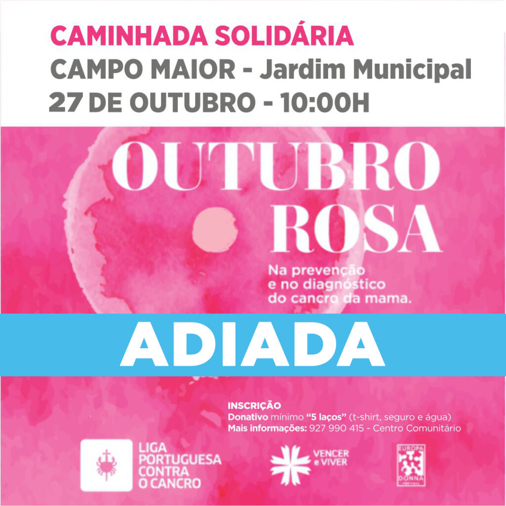 Devido às condições meteorológicas adversas, o Município de Campo Maior anunciou o adiamento da Caminha Solidária que estava prevista para hoje.