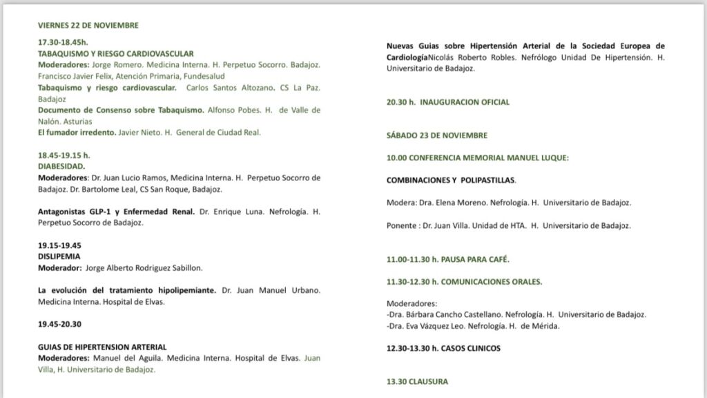 As jornadas clínicas repartem-se por dois dias, a 22 de Novembro no Colégio de Médicos em Badajoz e, no dia 23, no Forte da Graça de Elvas.