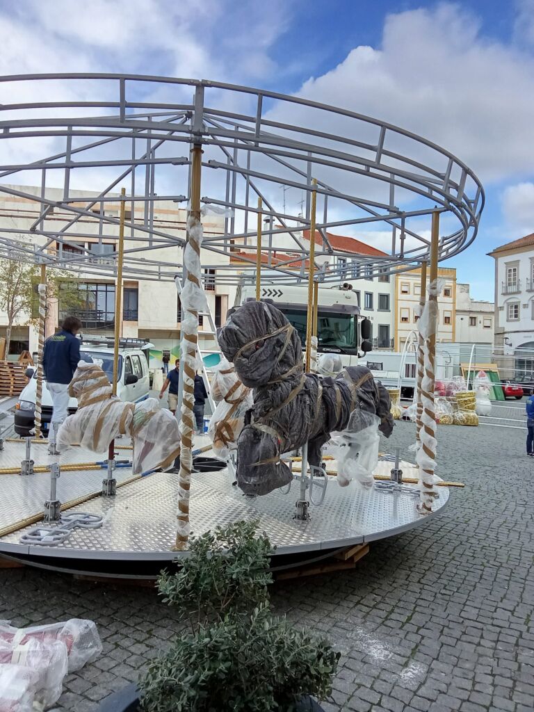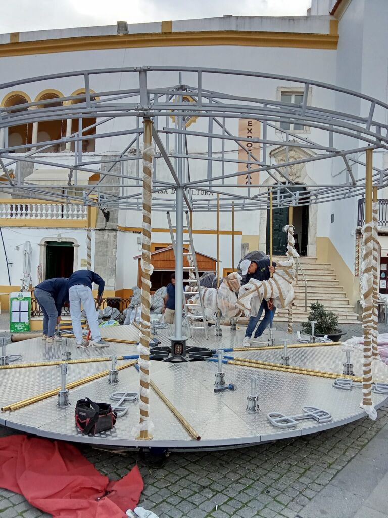 Ao longo de toda esta quarta-feira, uma equipa de profissionais está a proceder à montagem do carrossel infantil.