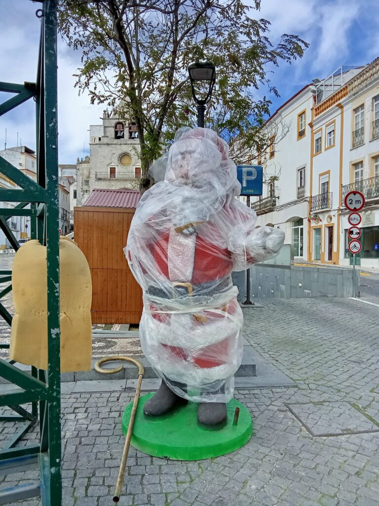 Na artéria principal do Centro Histórico, já se pode ver, ainda embalados em plástico, o Pai Natal, o boneco de neve, os soldadinhos de chumbo e muitas outras figuras características da época que se aproxima.