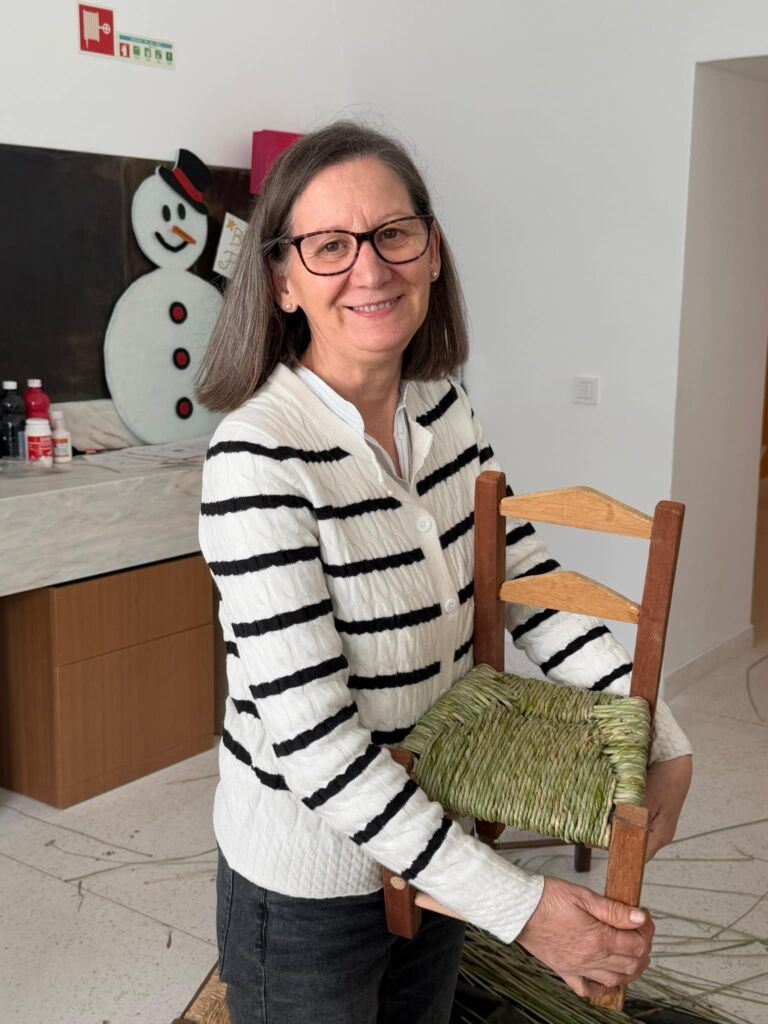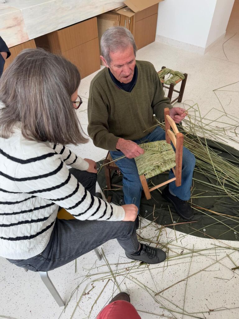 A ação foi ministrada por Francisco Matela, o único artesão do concelho de Elvas que mantém a tradição das cadeiras em bunho, produzidas no seu atelier da Rua dos Quartéis.