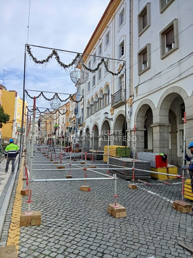 Uma vasta equipa de trabalhadores está a construir aquela que vai ser a grande novidade da festa 2024 da Elvas Cidade Natal, na Rua da Cadeia, o que obrigou a praça de táxis a funcionar até Janeiro junto aos Correios.