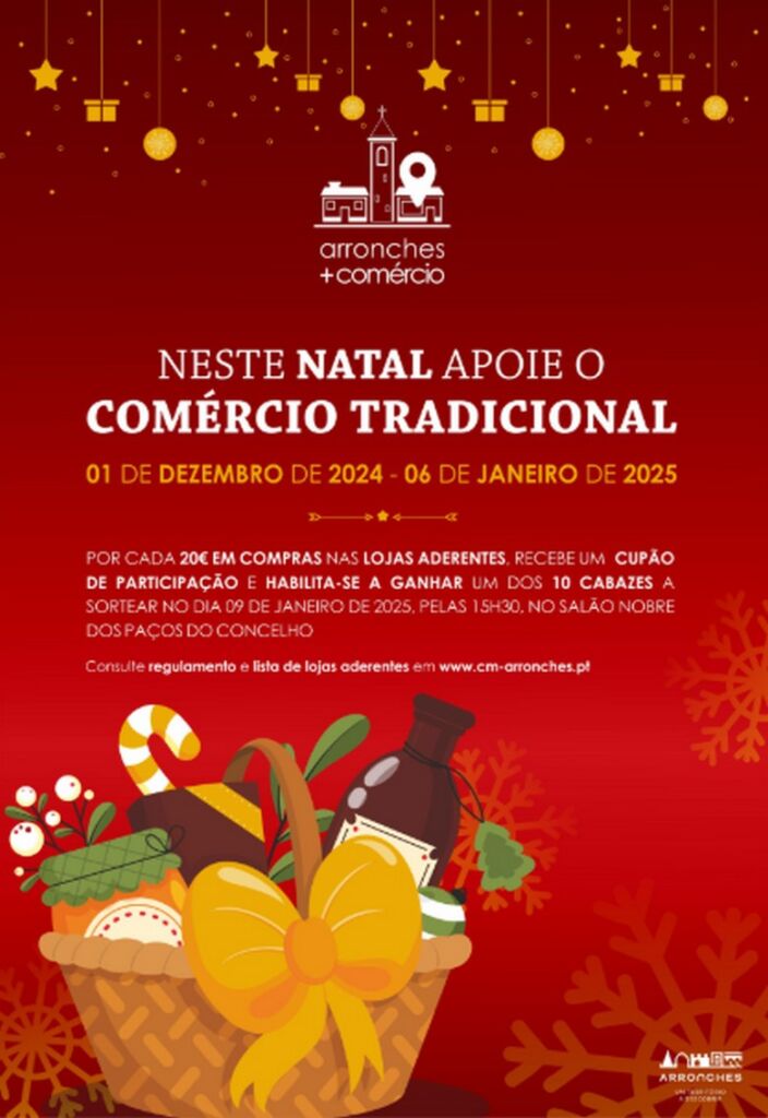 Assim, por cada 20€ de compras efetuadas em qualquer loja aderente, o cliente terá a oportunidade de preencher um cupão que o habilita a um dos dez cabazes, compostos com produtos adquiridos nos espaços colaborantes, que serão sorteados numa sessão pública a ter lugar no Salão Nobre dos Paços do Concelho, no dia 9 de janeiro, pelas 15H30.