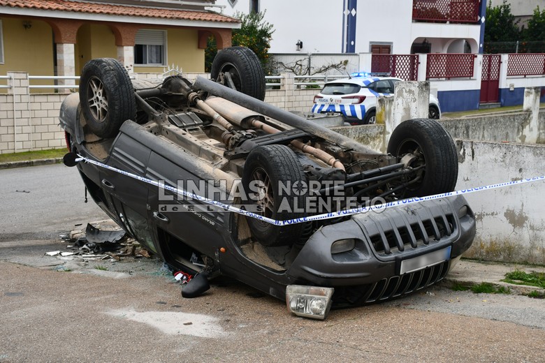 O acidente aconteceu num cruzamento, tendo um dos veículos capotado.