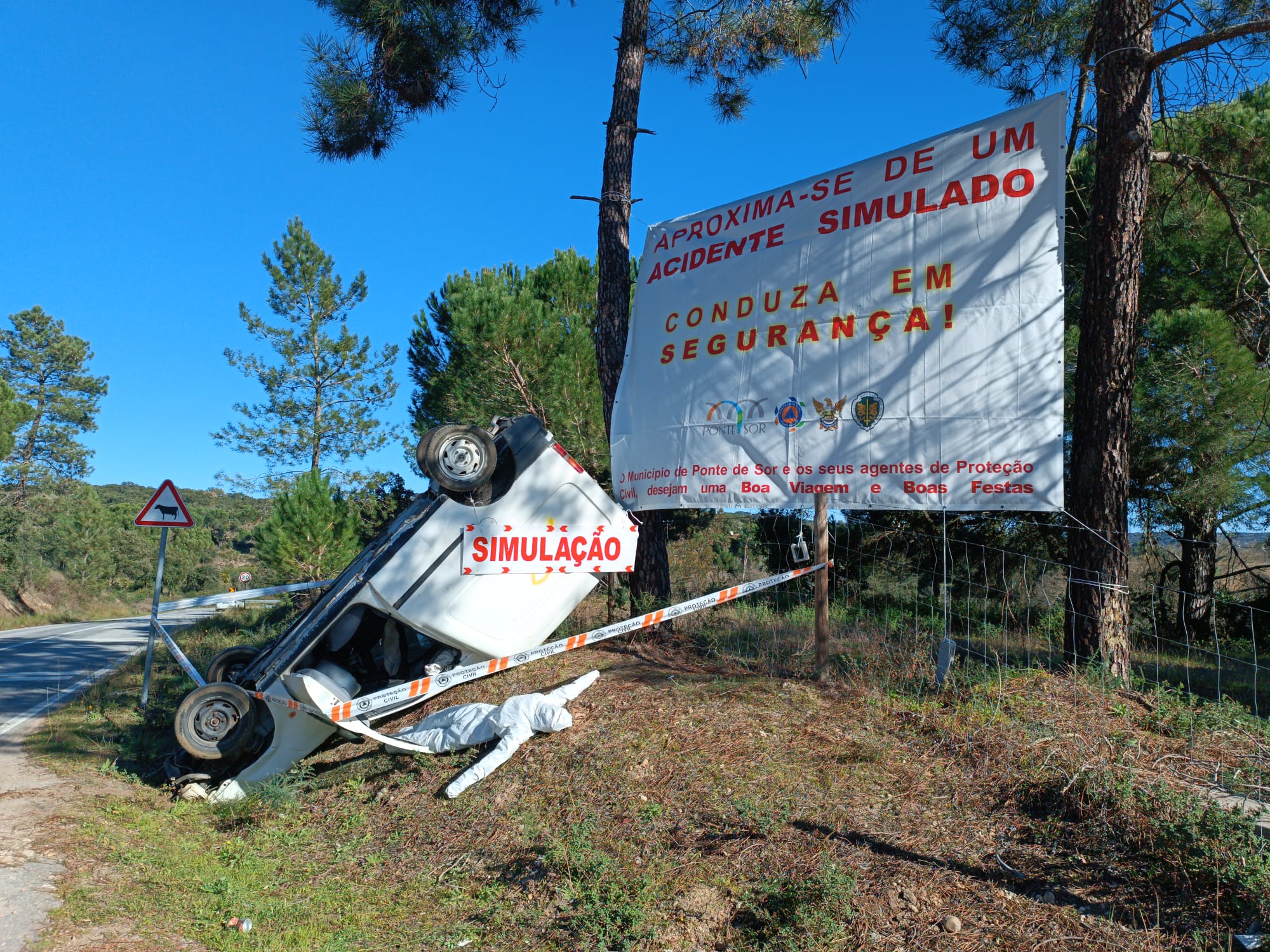 Nesta ação ocorrerá a divulgação de informação apelando à condução defensiva e segura; a montagem de quatro cenários simuladores de acidente rodoviário na Rotunda do Domingão, EN2 no Cansado e outros dois na estrada nacional EM1061, sentido Ponte de Sor – Couço e vice-versa e o Pré-posicionamento de meios e Operacionais do Serviço Municipal de Proteção Civil, dos Bombeiros e da GNR junto aos cenários de acidente simulado.