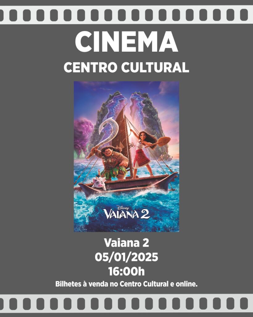 O filme “Vaiana 2” é exibido às 16h00 no Centro Cultural.