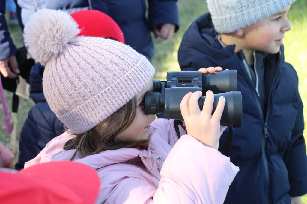 À procura dos seus amigos duendes pelos caminhos de Ouguela, as crianças aprenderam algumas curiosidades sobre os “Grous” e tentaram vê-los através dos instrumentos adequados.