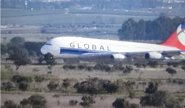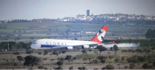 O maior avião do mundo, Airbus A380, da Global Airlines, aterrou, nesta sexta-feira, dia 17 de Janeiro, no Aeroporto de Beja.