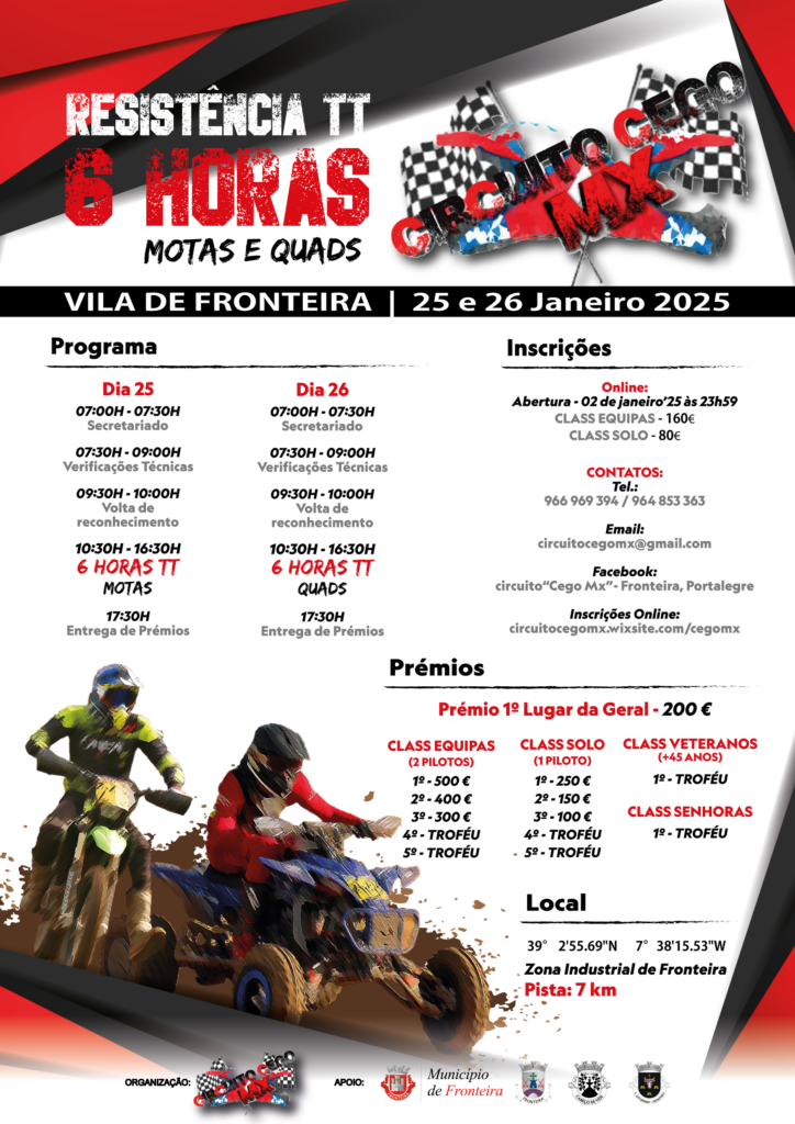 O terródromo de Fronteira será o palco de mais uma edição das ” 6 Horas de Todo-o-Terreno”, evento de resistência que reunirá cerca de 270 participantes nas categorias de motos e quads.