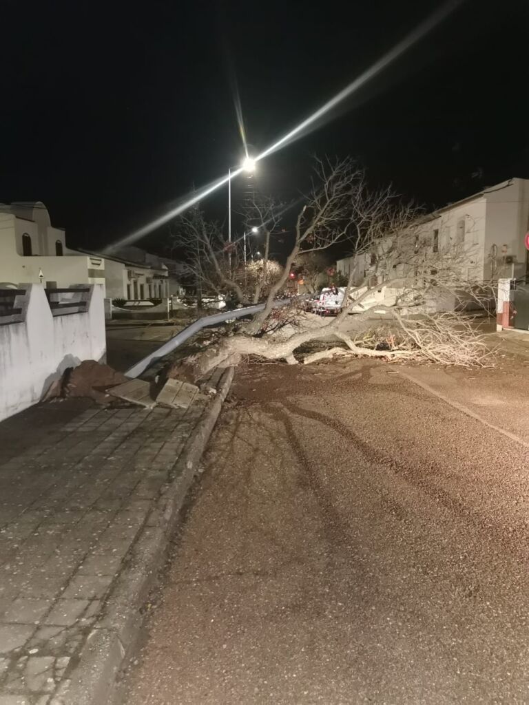Uma árvore e um poste elétrico tombaram, na noite desta segunda-feira, dia 27 de Janeiro, na Rua Salgueiro Maia, em Campo Maior, devido às condições meteorológicas que atingem a região.