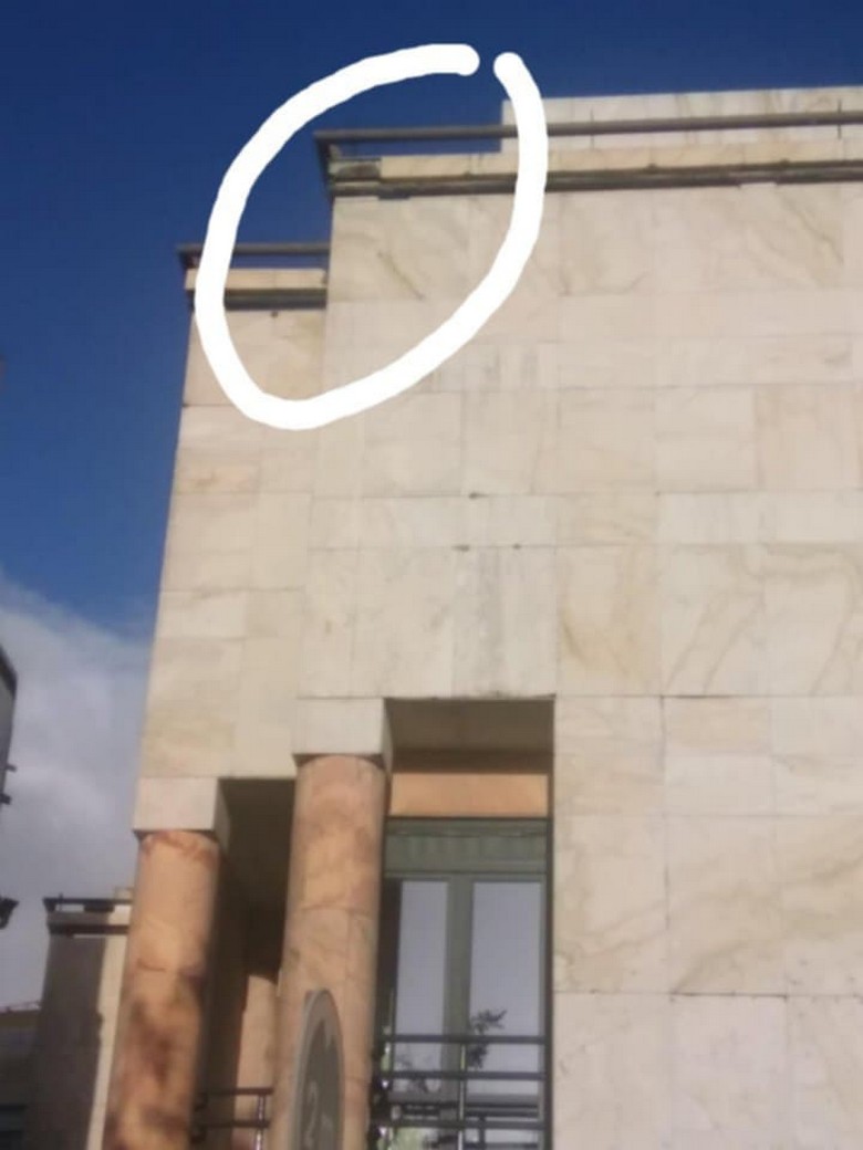 Para além do deslizamento de terras e pedras que teve lugar durante esta tarde de quarta-feira, 29 de Janeiro, na antiga Estrada Nacional 4, também sucedeu a queda de uma pedra mármore do edifício do Novo Banco, na Praça da República, em Elvas.