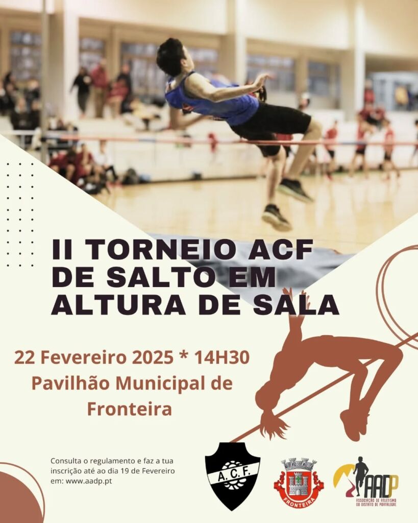 O Pavilhão Municipal de Fronteira será palco, no dia 22 de fevereiro de 2025, do 2º Torneio de Salto em Altura em Sala, uma iniciativa do Atlético Clube Fronteirense, com o apoio da Câmara Municipal de Fronteira e a colaboração da Associação de Atletismo do Distrito de Portalegre (AADP).