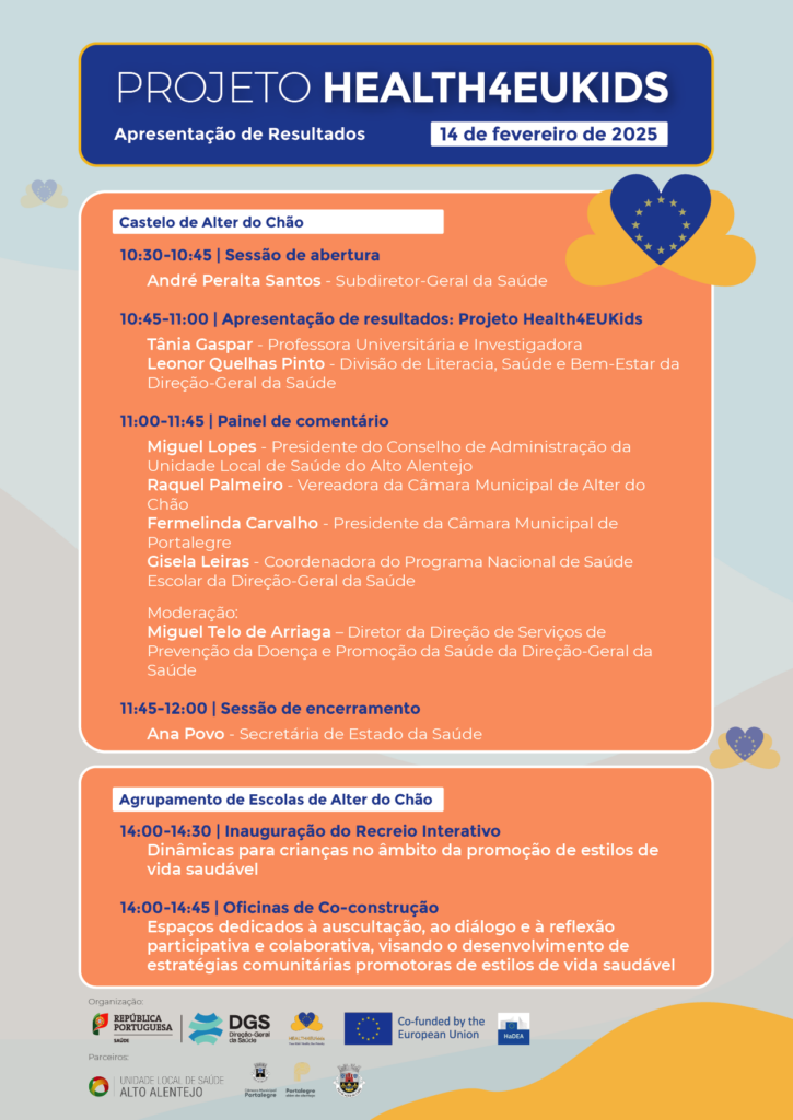 Esta iniciativa, promovida pela Direção-Geral da Saúde em parceria com a Unidade Local de Saúde do Alto Alentejo e os Municípios de Alter do Chão e de Portalegre, insere-se no âmbito dos projetos piloto atualmente em implementação nos dois concelhos, envolvendo crianças do 1.º ciclo.
